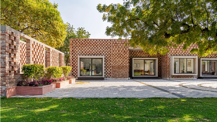 This New Delhi farmhouse is made of brick, shadow and sunlight
